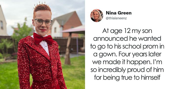 16-Year-Old Boy Wears A Red Dress To Prom And Is Cheered On By Classmates and Teachers At School
