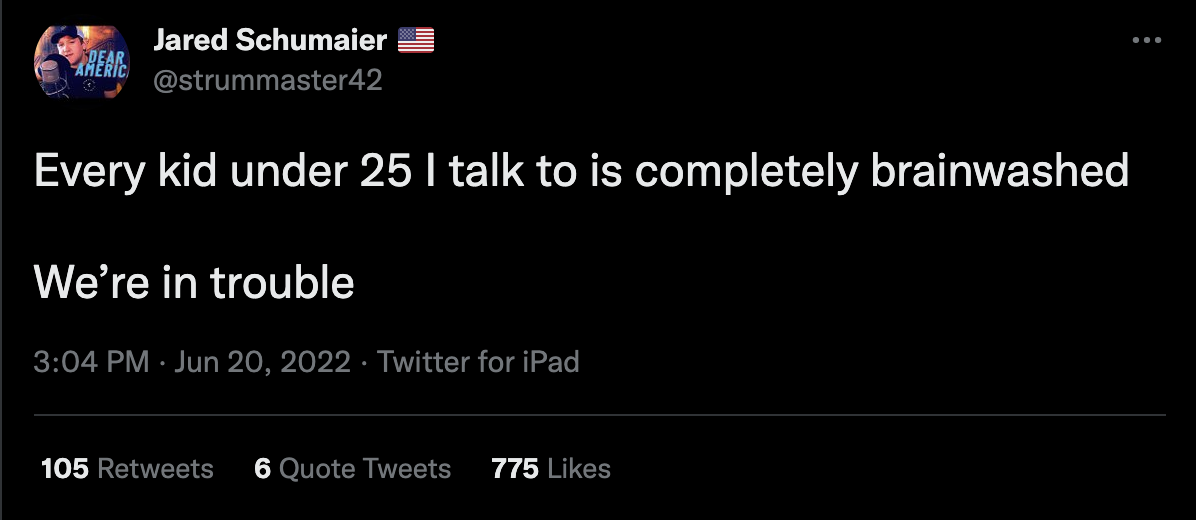 "Every kid under 25 I talk to is completely brainwashed"