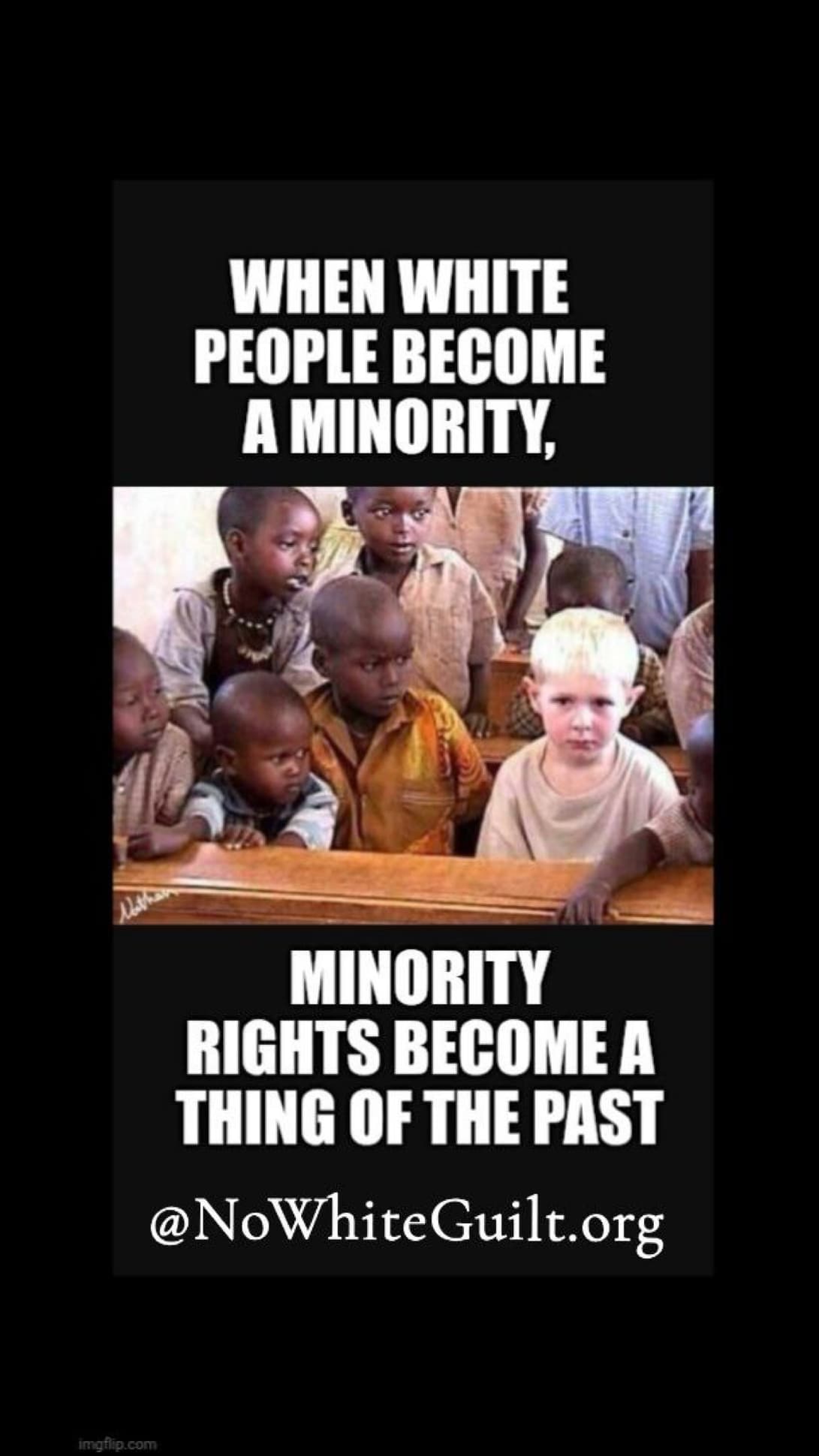 White people are the minorities and must take their countries back. No more tolerance. No more suicidal empathy!